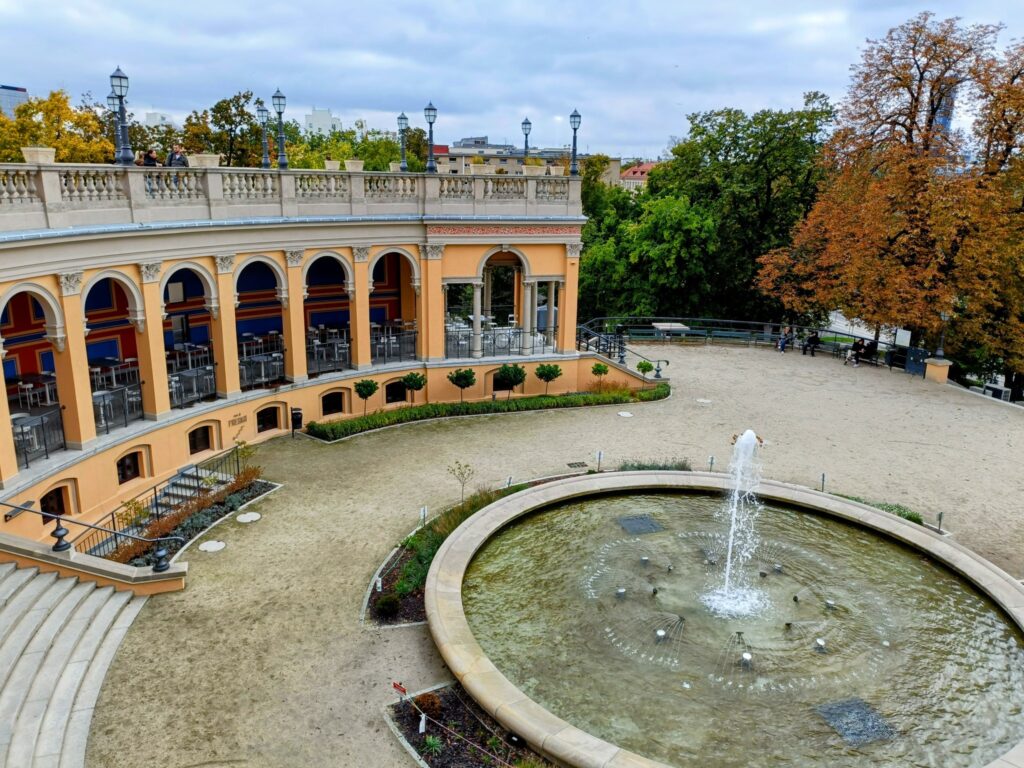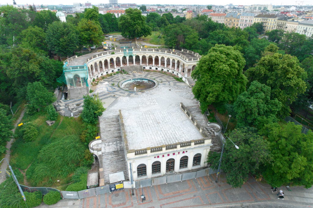 Przez dekady obiekt był zaniedbany, a przestrzeń rekreacyjna ograniczona. Dopiero ostatnie lata przyniosły gruntowną rewitalizację: odnowiono pawilon perystylowy, kolumnadę, fontannę i schody, a także przywrócono historyczne kolory ścian – od błękitów po czerwienie, przypominające freski z Pompejów.