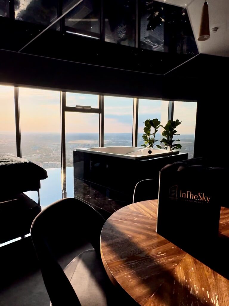 In the Sky Apartments to przestrzeń, gdzie nowoczesny design spotyka się z komfortem na najwyższym poziomie, dosłownie i w przenośni – bo niektóre apartamenty znajdują się nawet 200 metrów nad ziemią. To idealne miejsce na romantyczny weekend, rocznicę, wyjątkowy prezent albo po prostu chwilę luksusu tylko dla siebie.