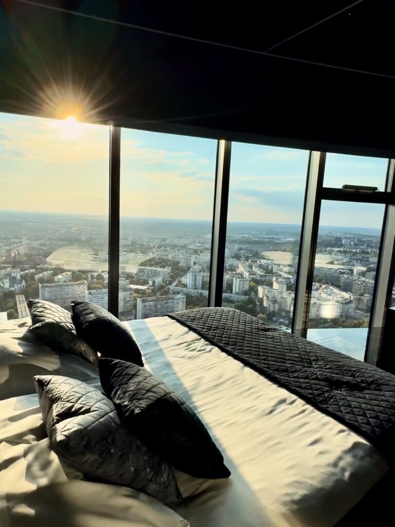W zależności od wybranego apartamentu, możesz zanurzyć się w wannie z widokiem na panoramę miasta lub odpocząć w eleganckiej sypialni z ogromnymi oknami.