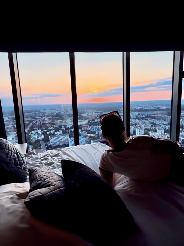 Wyobraź sobie poranek z filiżanką kawy w dłoni, kiedy zza panoramicznych okien rozciąga się widok na cały Wrocław – mosty, dachy kamienic i wijącą się Odrę. A wieczorem? Światła miasta tworzące prawdziwy spektakl. Tak właśnie wygląda pobyt w In the Sky Apartments, mieszczących się w legendarnym Sky Tower.