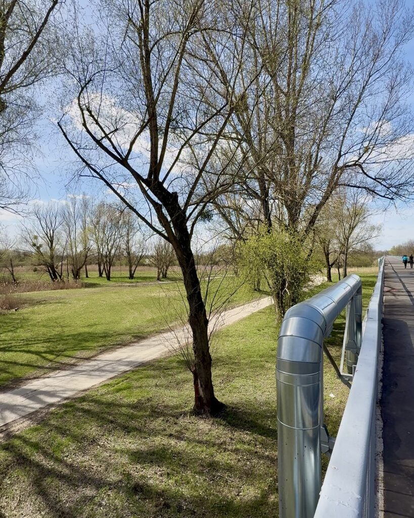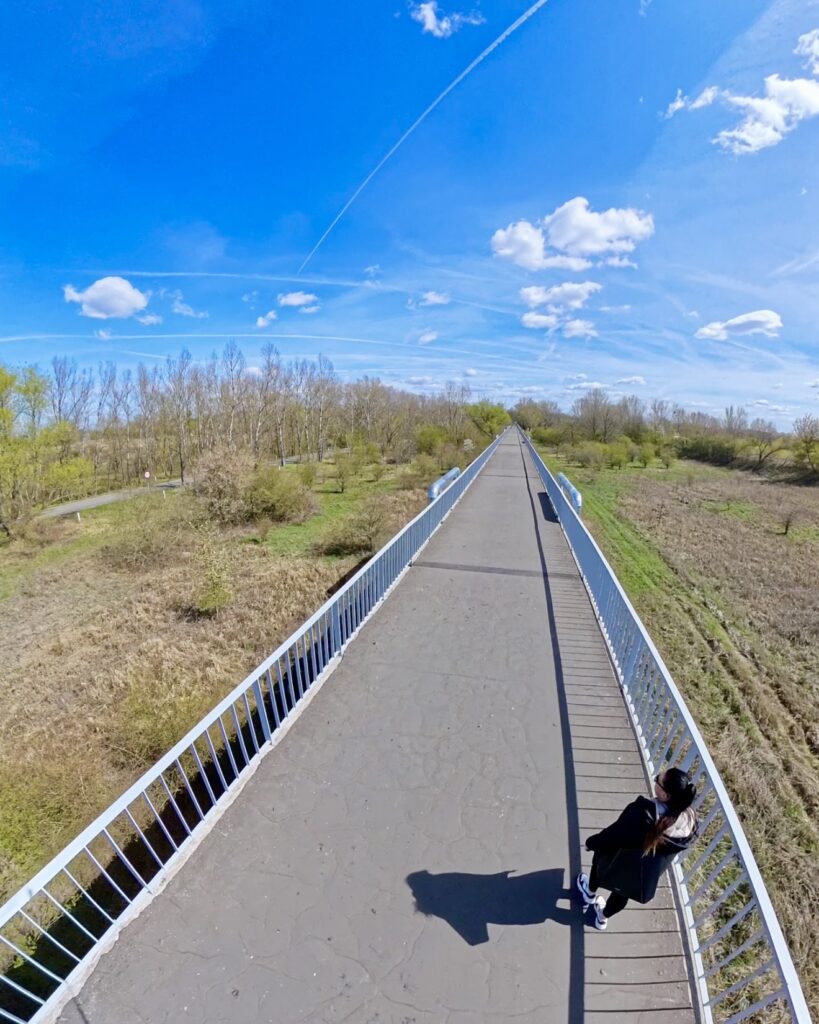 Spacer po kładce to prawdziwa przyjemność, oferująca panoramiczne widoki na Odrę, rozległe tereny zielone oraz odległą sylwetę Wrocławia. Jest to idealne miejsce na relaksujące przechadzki o wschodzie i zachodzie słońca.