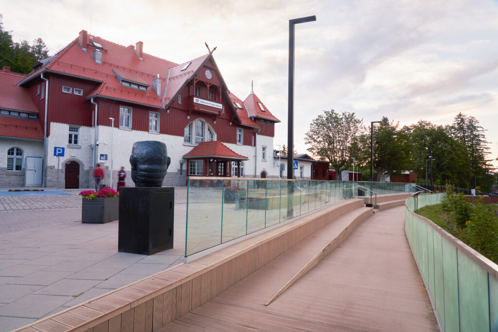 Mało kto wie, że dworzec w Szklarskiej Porębie Górnej to jeden z najwyżej położonych dworców kolejowych w Polsce – leży ponad 700 metrów n.p.m. To stąd wyruszają turyści na karkonoskie i izerskie szlaki, a także na czeską stronę – do Harrachova. Rocznie korzysta z niego blisko pół miliona pasażerów.