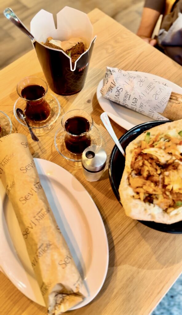 - Ekmek – tradycyjny turecki chlebek z wołowo-baranim kebabem lub kurczakiem. Opiekany i chrupiący – syci jak mało co.