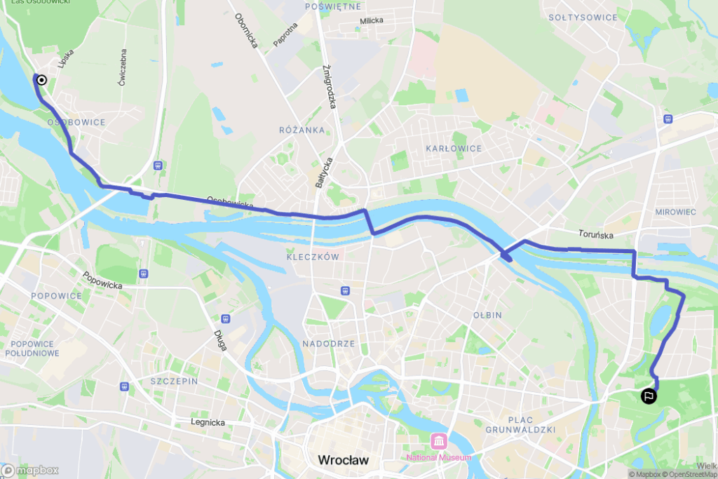 Park Szczytnicki to największy park we Wrocławiu, oferujący liczne ścieżki rowerowe i atrakcje, takie jak Hala Stulecia i Ogród Japoński. Możecie wybrać trasę z ulicy Osobowickiej prosto do Parku Szczytnickiego.